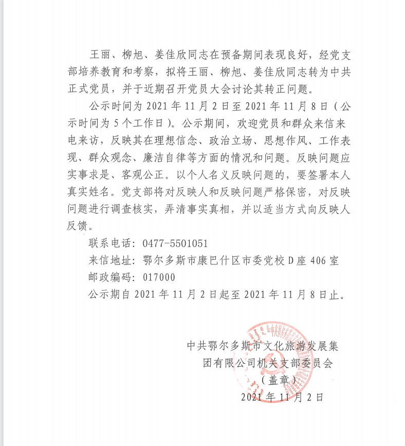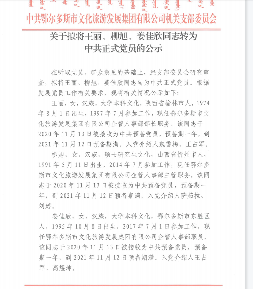 上一篇:中共鄂爾多斯市愛之蒙旅游開發(fā)有限公司關(guān)于擬將藺瑋轉(zhuǎn)為正式黨員的公示