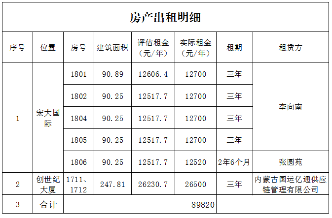 三、房產(chǎn)出租明細(xì)